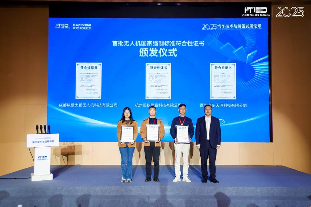 论坛期间举行了首批无人机国家强制性标准符合性证书颁发仪式,标志着我国低空产业发展进入“标准引领、规范发展”的新阶段。获证企业代表表示,将以此为契机,持续提升产品品质与技术能力,积极助推行业标准化建设。