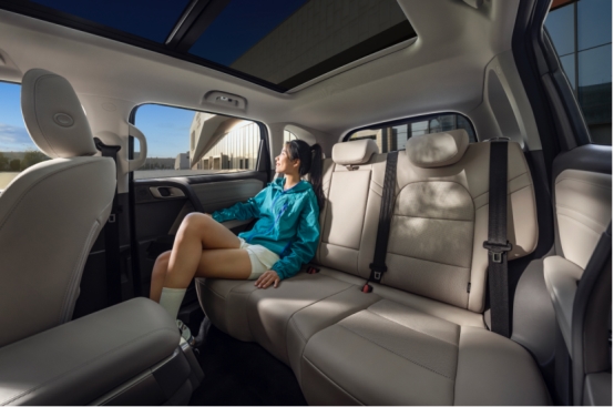 从博乐市区出发,前半段都是铺装路面,哈弗大狗2026款的城市通勤体验做得挺到位,长途开下来也不觉得累。坐进座舱,沙丘米的内饰让人感觉暖乎乎的,仪表板和门护板都是软质包覆,摸上去触感特别温润。云柔舒享科技座椅特别贴合身体,靠背吸风+坐垫吹风的座椅通风策略三档可调,深入北疆竟有些凉意,关掉座椅通风打开加热,暖意从腰背蔓延开来,久坐也不觉得腰酸。行驶途中,我随口说一句“打开空调,播放音乐,导航到赛里木湖西侧观景点”,新一代Coffee OS 3智能座舱立马就响应了,250ms的极速语音识别,一句话的多个指令逐一执行,14.6英寸的大屏操作丝滑,导航路线一眼就能看清。沿途偶尔会有沙尘,森氧科技新风系统太管用了,等离子发生器+AQS空气质量控制,持续净化车内空气,哪怕开窗吹会儿风,车内的空气也始终清清爽爽。